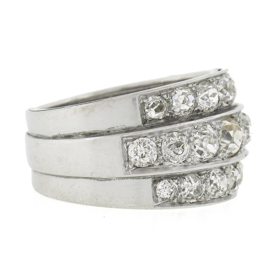 An antique solid platinum 3 row band ring, with 22 chunky old mine cut natural diamonds (G-L - VS2-I2 ; 2.75ctw). The ring is size 8.0, weighs a total of 7.90 grams, and measures 12.7mm wide.