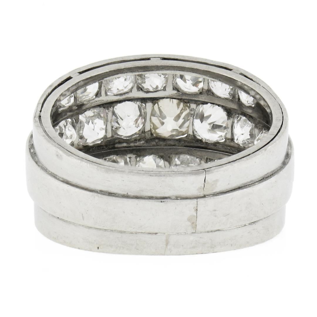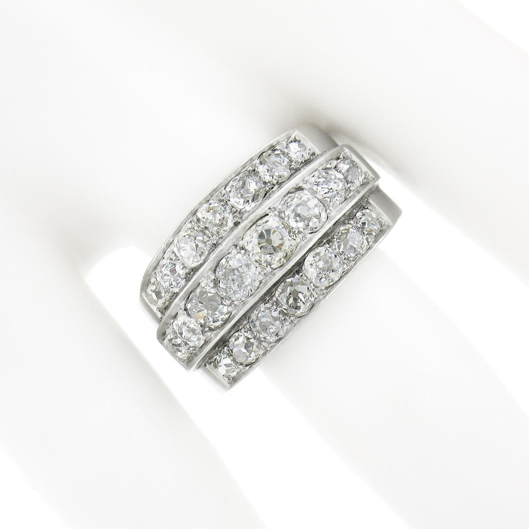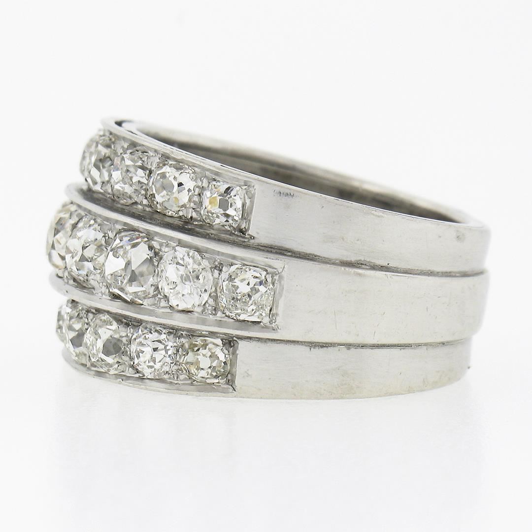 An antique solid platinum 3 row band ring, with 22 chunky old mine cut natural diamonds (G-L - VS2-I2 ; 2.75ctw). The ring is size 8.0, weighs a total of 7.90 grams, and measures 12.7mm wide.