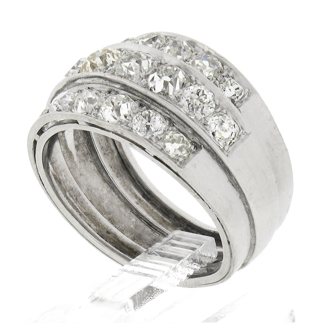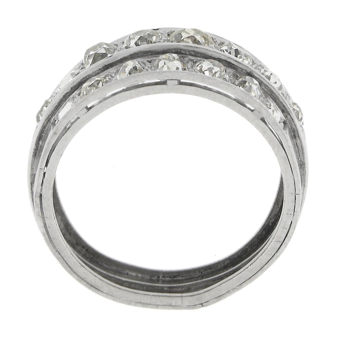 Antique Edwardian Platinum 2.75 ctw Chunky Old Mine Diamond 3 Row Wide Band Ring