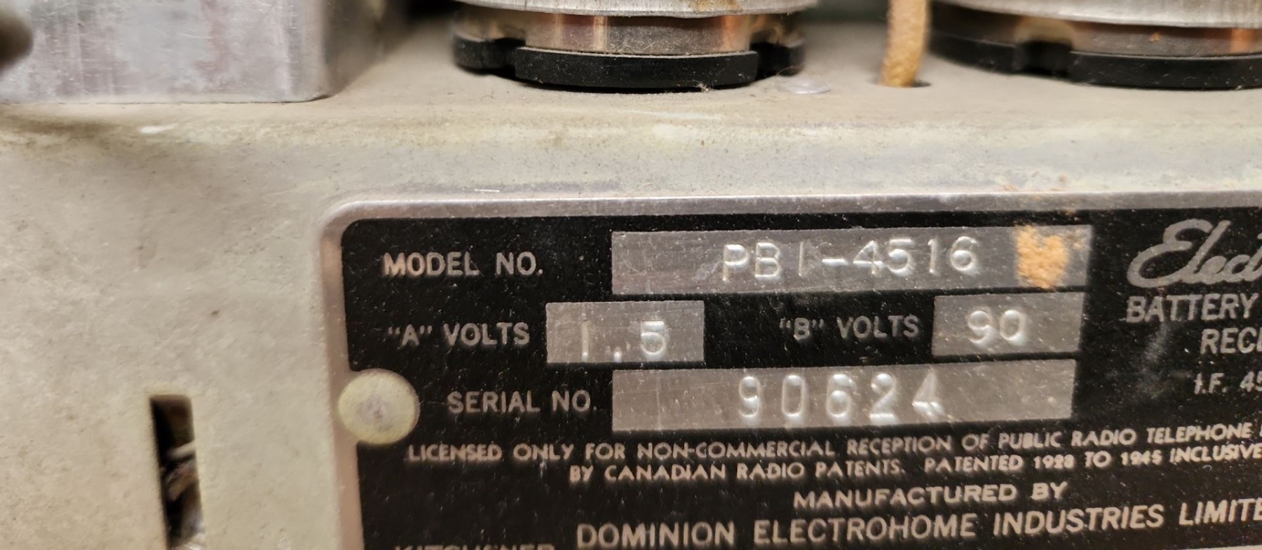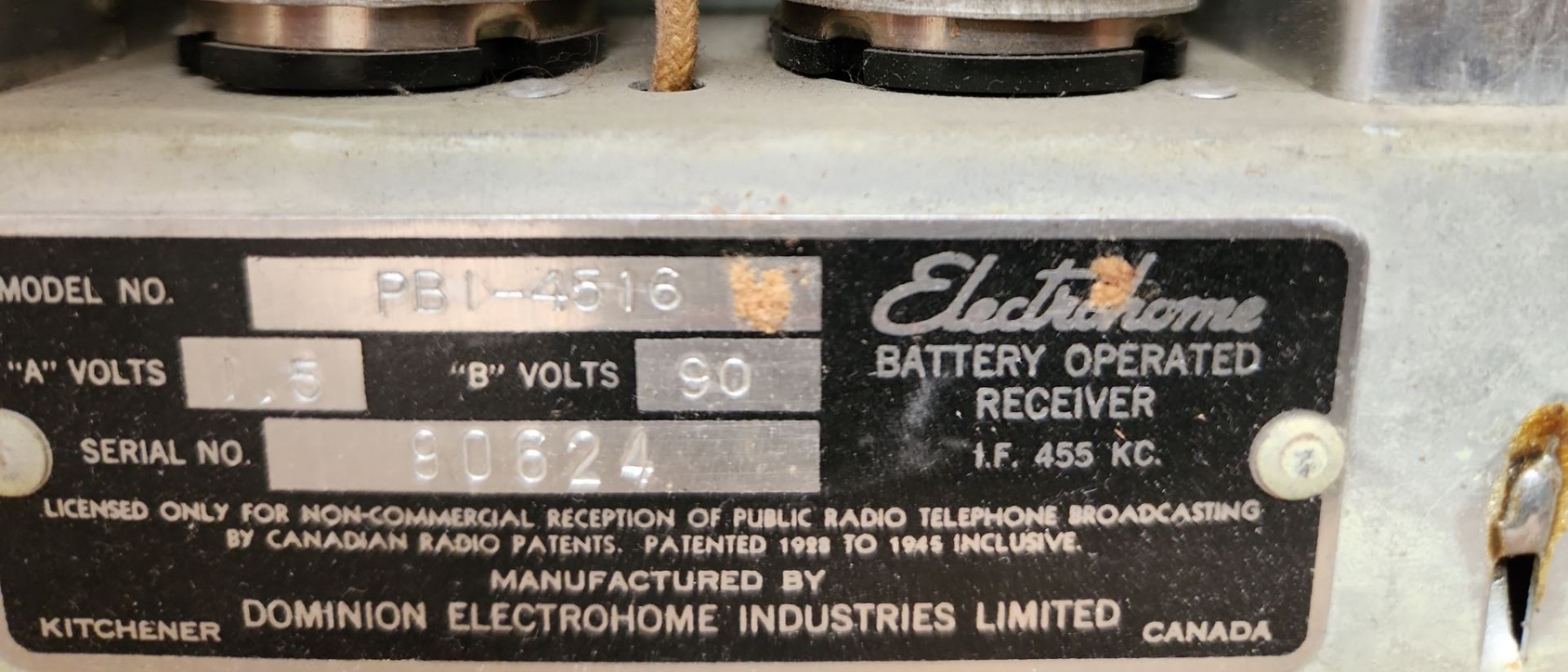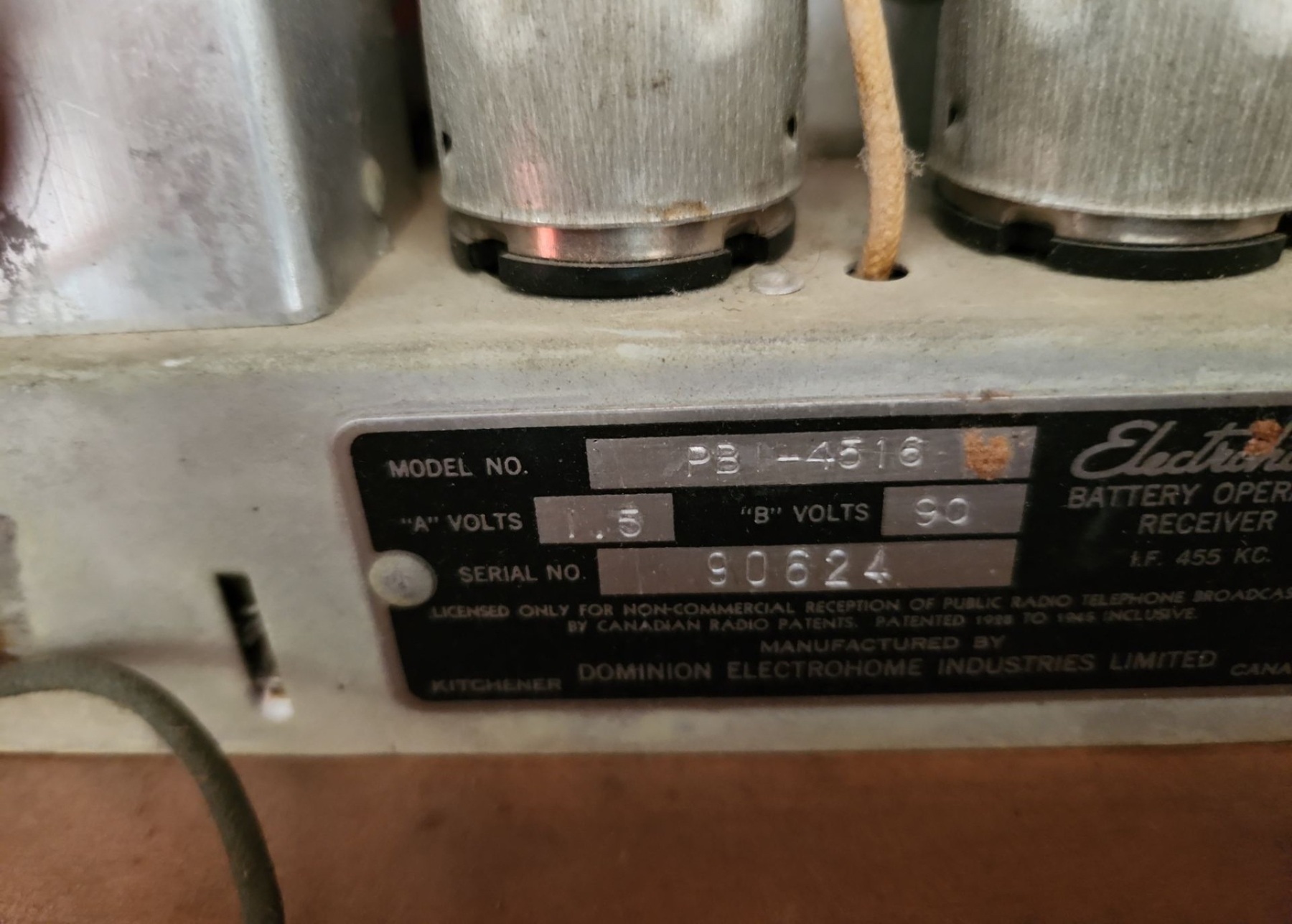 Antique Electrohome Model PB1-4516 Battery Operated Radio Receiver