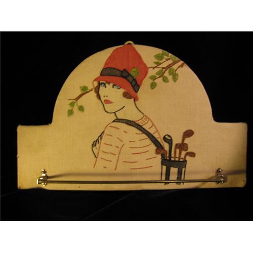 <tr><td>Title:Antique Embroidered Towel/Tie Rack Woman Golfer</td></tr>