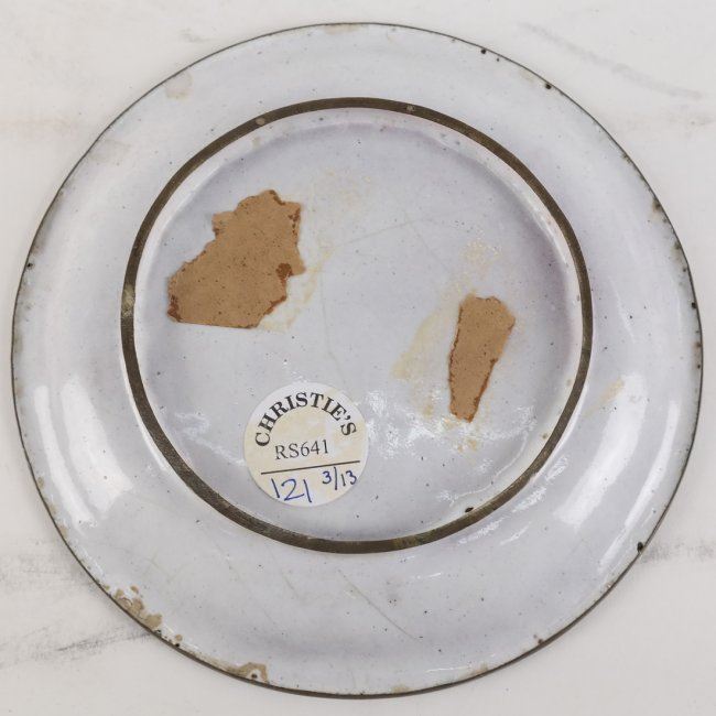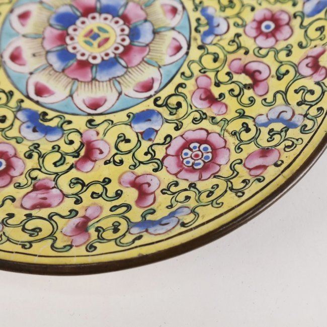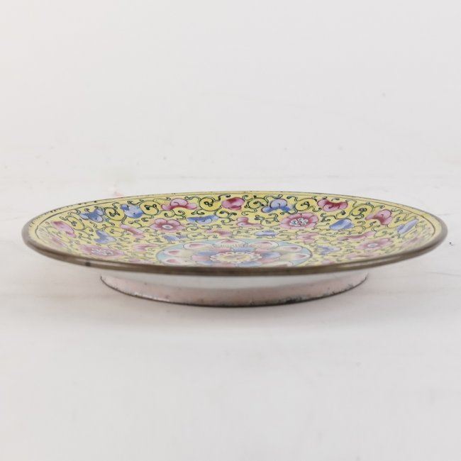 Antique floral motif enamel dish. Bears Christie's label "RS641 Lot 121". In good condition commensurate with age.