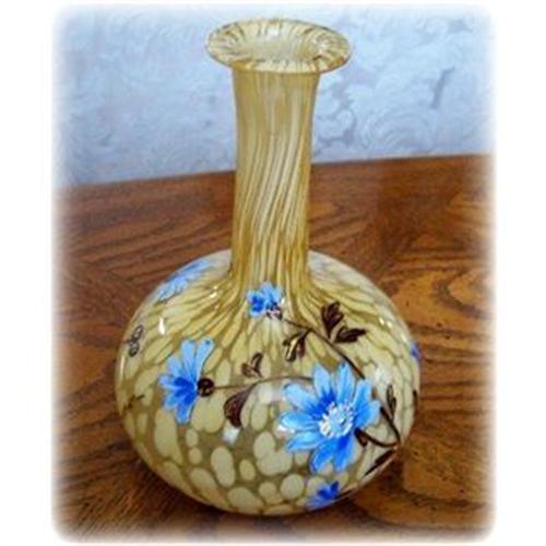 <tr><td>Title:Antique Enameled Pebble Spatter Glass Vase</td></tr>