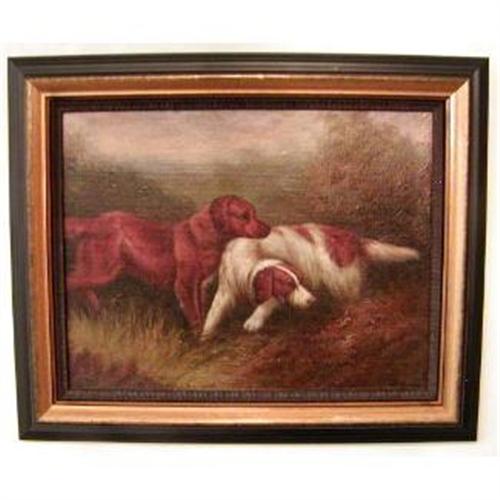<tr><td>Title:Antique English Dog Oil Painting "Setters"</td></tr>