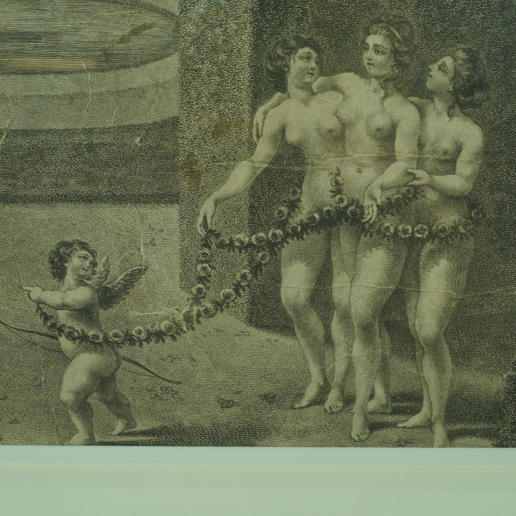 Antique Engraving by Jh Maillet, Cupid and Three Graces