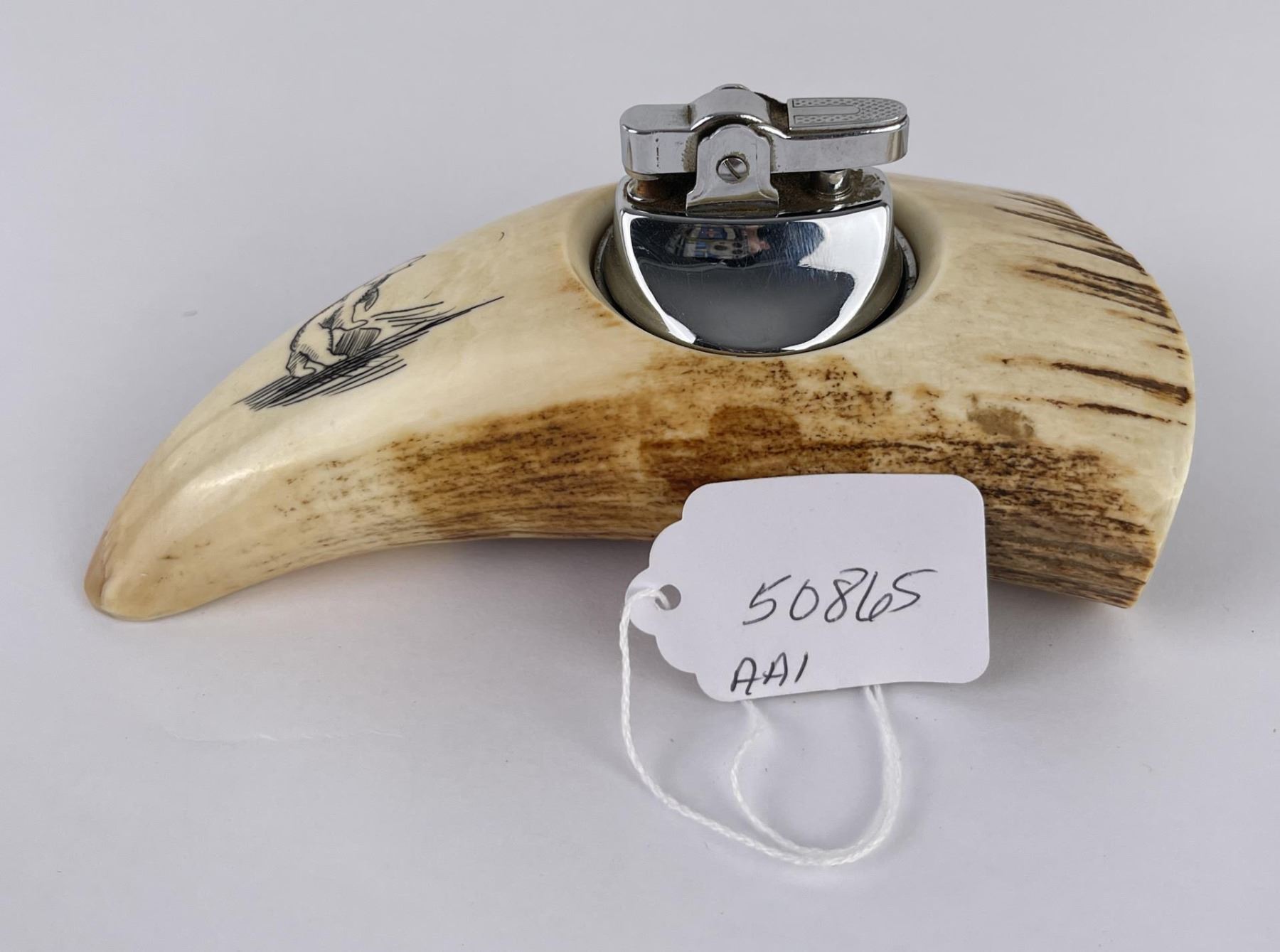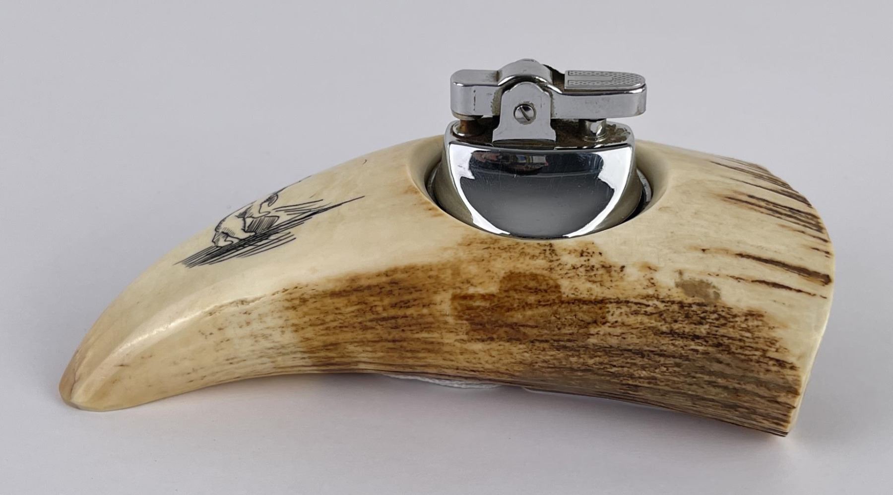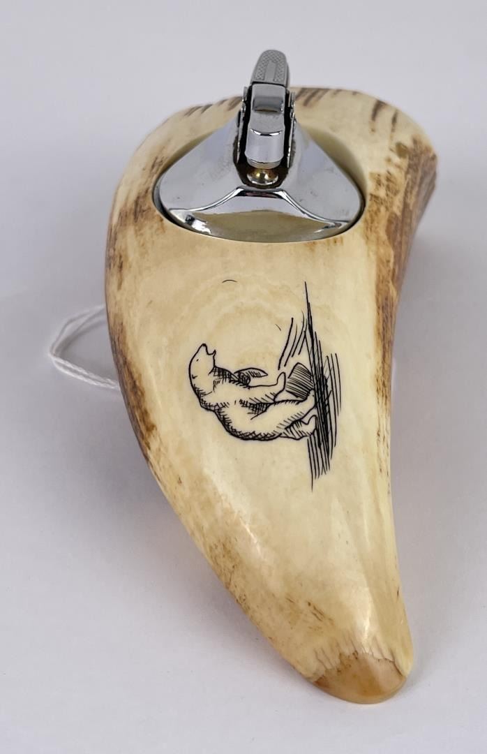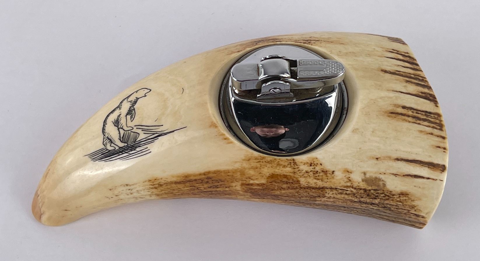 Lighter with polar bear scrimshaw. 5 1/2" long. Allard Auction Collection Inv: AA1 50865