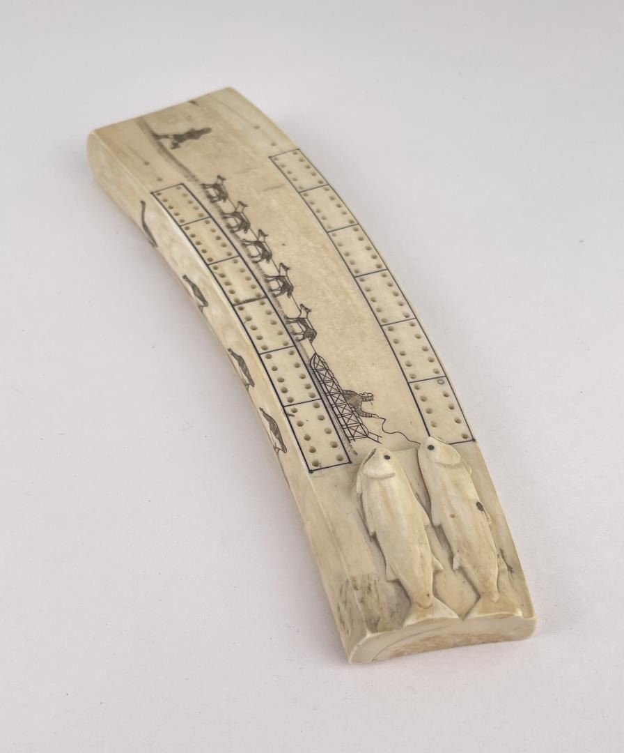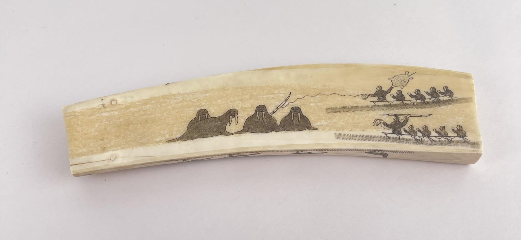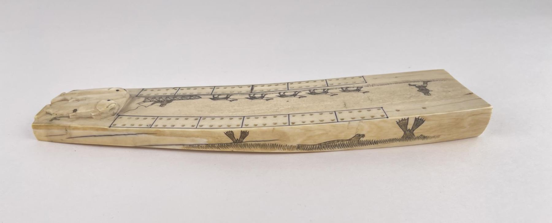 Excellent example. Fully Scrimshawed with great imagery. 10 1/4" long, 3" wide.