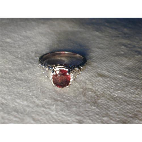 </font></strong>You are looking at an antique estate 14K white gold filigree ruby ring. This beautiful piece features a natural oval ruby measuring 6 mm by 7 mm nestled in the elegant white gold filigree design. The ruby weighs about one carat. The top of the ring measures almost .50 of an inch wide. This ring is a size 6.25. Sizing is available. It weighs 4.1 grams. It is in mint condition.</font>
