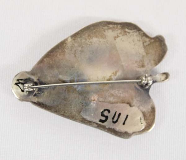 Antique Estate Native American Navajo Sterling Silver Turquoise and Branch Coral Brooch, measures 1.5'' x 2'', 15.97g in total wt.