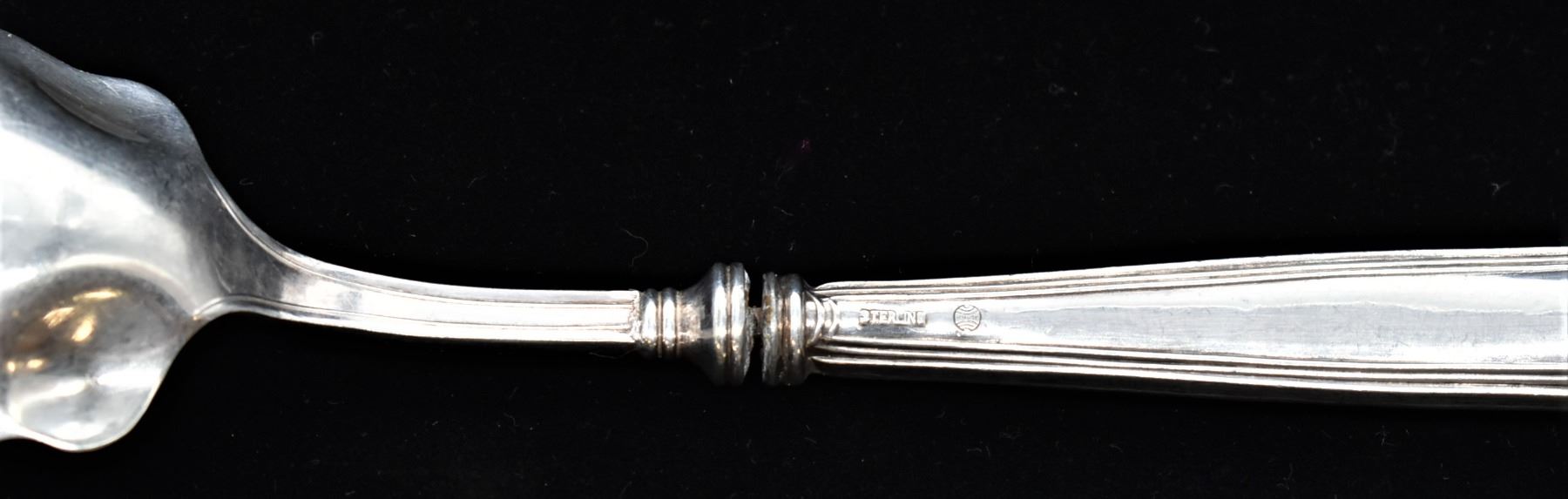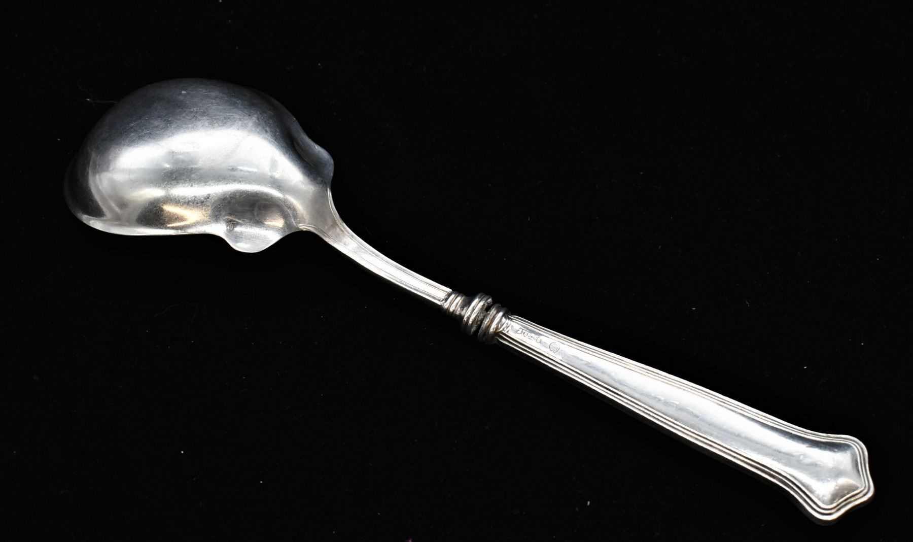Antique Estate Sterling Silver Serving Spoon, measures 9''L x 2.5''W, hallmarked and stamped sterling, 75.9 total gram wt. or 2.68 oz.