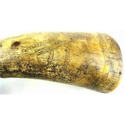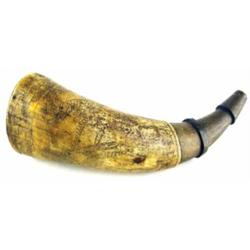 Antique Etched Powder Horn. 7" Long. Est $750 - $1,250.
