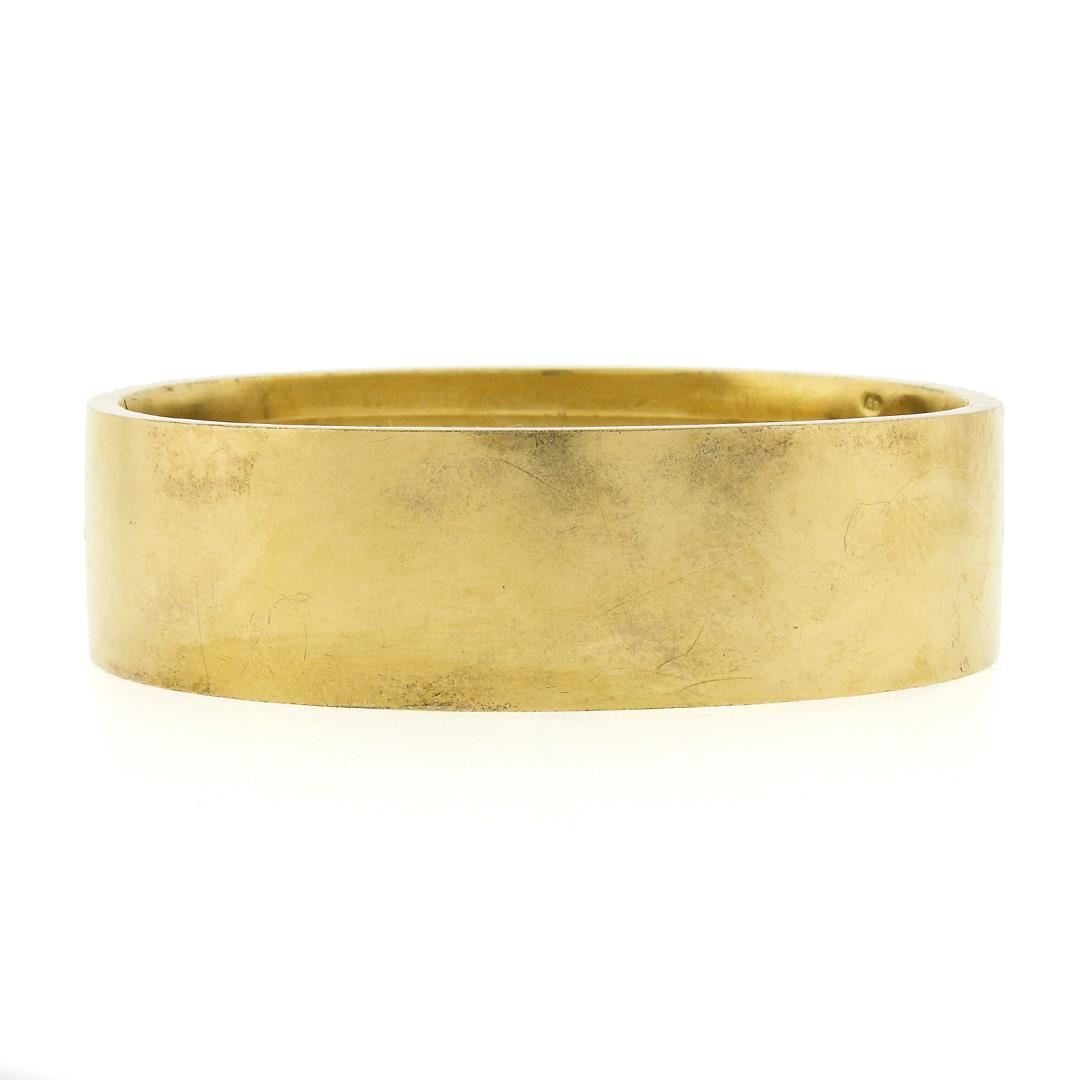 An antique solid 14k yellow gold bangle bracelet, with 1 round natural matrix turquoise (11.8mm), and 2 rose cut natural diamonds (0.10ctw). It weighs a total of 26.75 grams, measures 17.6mm wide, and measures 7 inches in length.