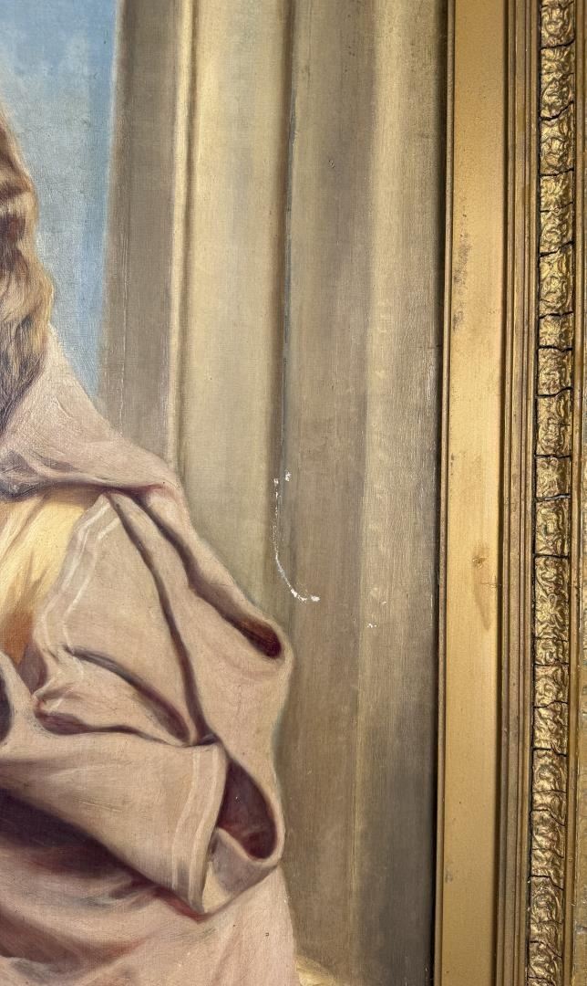 Canvas by Windsor & Newton London. 25" by 30" unframed, 31" by 36" framed.