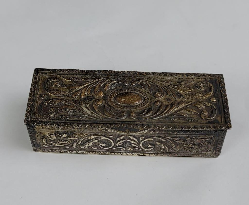 Very nice sterling silver box. Hallmarked on the bottom as shown. 1.25" by 3.5". 120 grams.