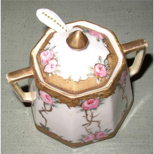 <tr><td>Title:Antique Exquisite Nippon Jam Pot w/Lid & Spoon</td></tr>
