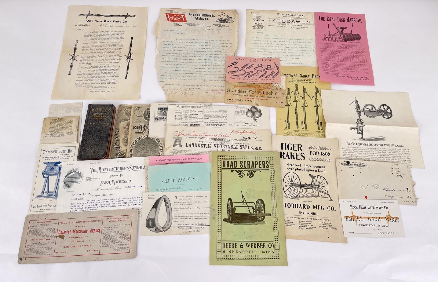 John Deere, Stoddard, Rock Falls Barb Wire, Elgin, Ohio Barb Wire.