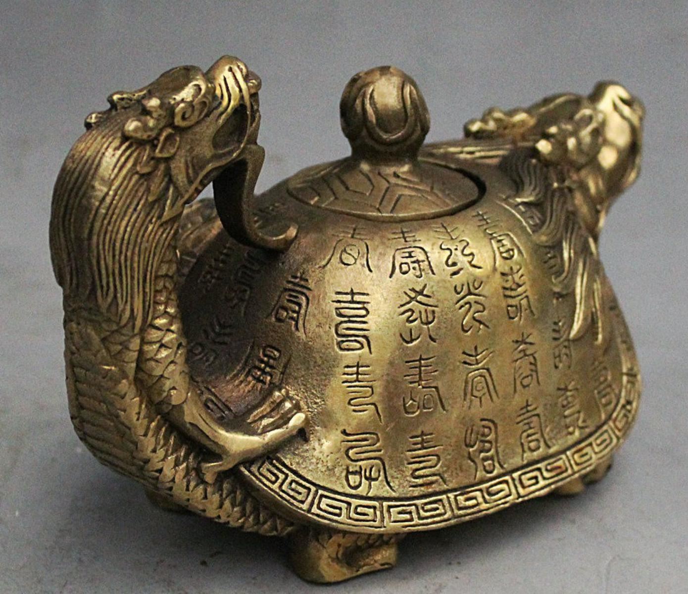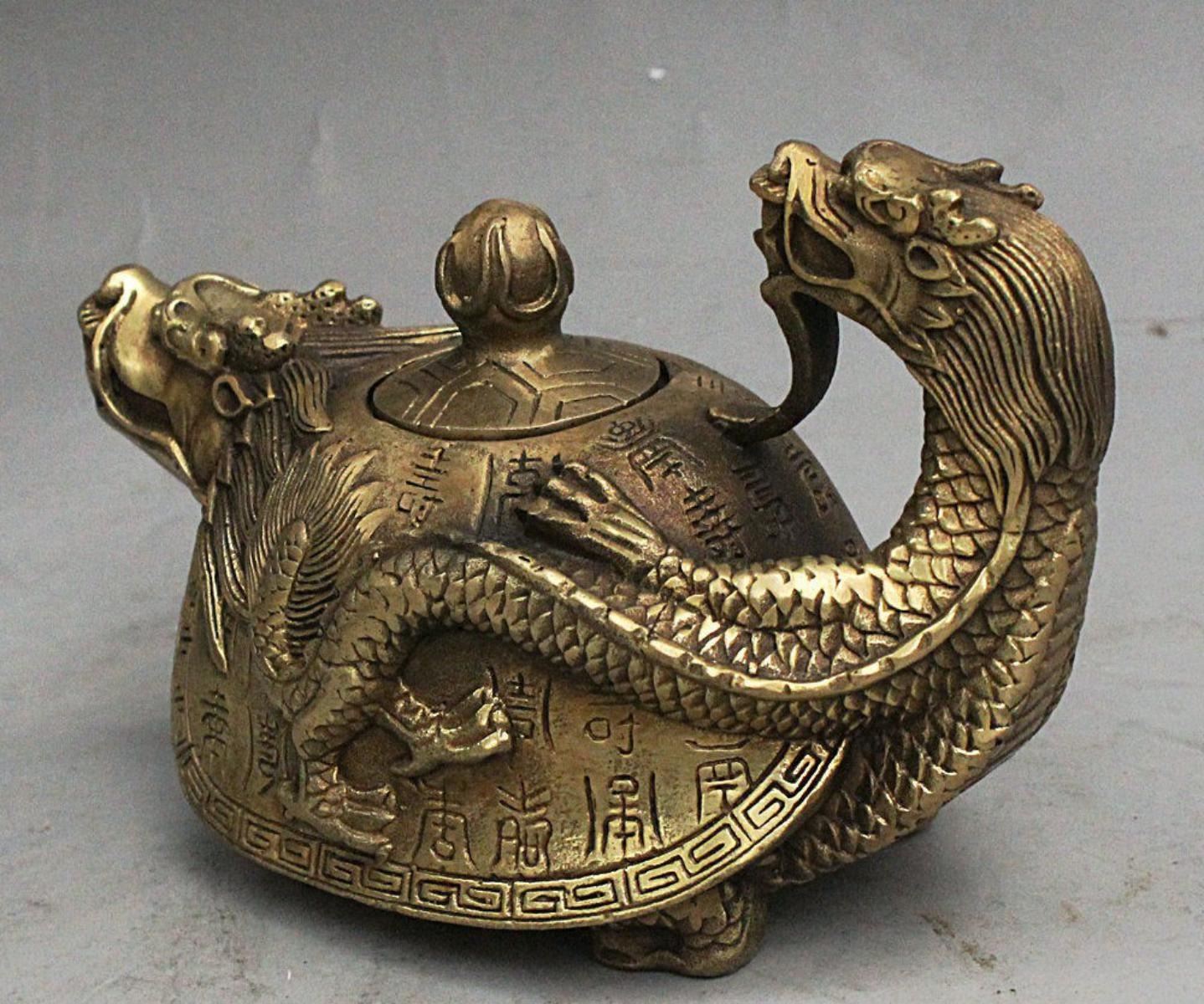 Antique Fengshui Brass Dragon Turtle Tortoise Wine Pot; size 6 inch long....Height 3.8 Inches....Width 3.2 Inches...Origin - China