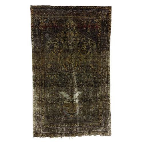 <B>An Antique Ferragan Silk Prayer Rug</B></I><BR><BR>West Persia<BR>Circa 1890<BR>Wool, silk<BR>80.33 inches x 50.75 inches<BR><BR>With beautiful green and purple coloring. <B>Condition Report:</B> Normal signs of wear as appropriate with age with slight damage to border.<BR><BR><b>Shipping:</b> Requires 3rd Party Shipping (<a target="_blank" href="http://www.heritageauctions.com/common/shipping.php">view shipping information</a>)