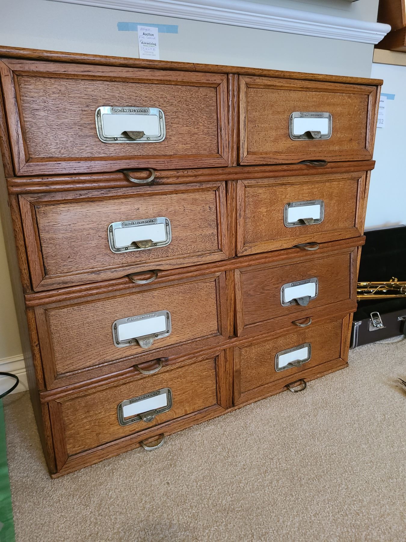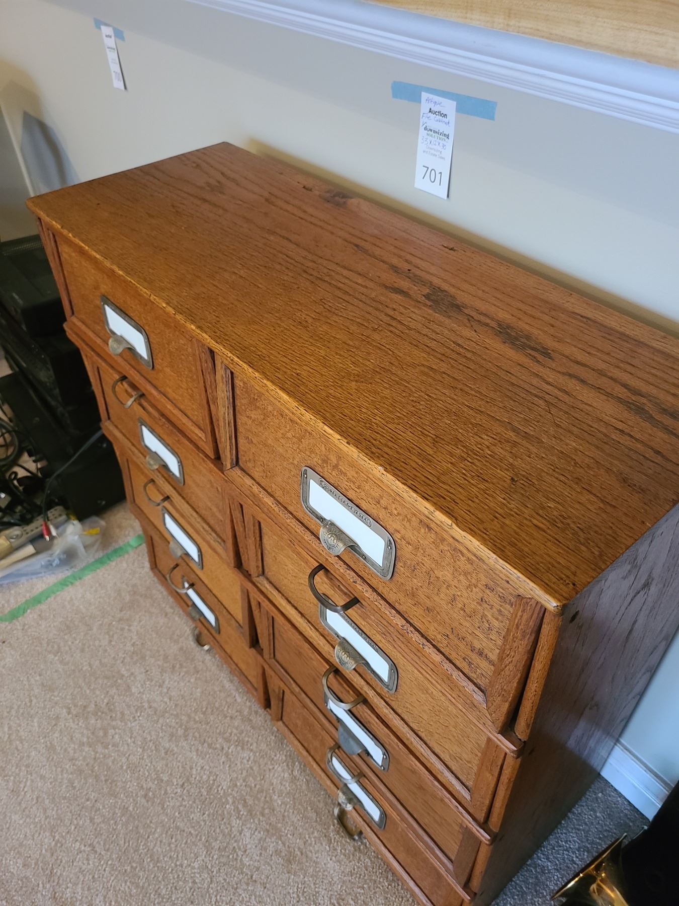 Antique file cabinet 33x12x30 with 8 sliding drawers. Heavy, bring help to move downstairs. Pickup a5 11 am.