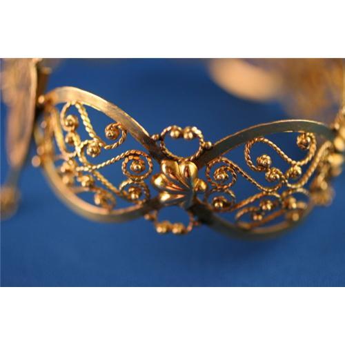<tr><td>Title:Antique Filigree 18K Gold Bangle Bracelet</td></tr>