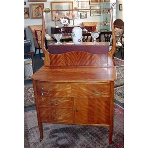 <tr><td>Title:Antique Flaming Birch Washstand with Towel Rack</td></tr>