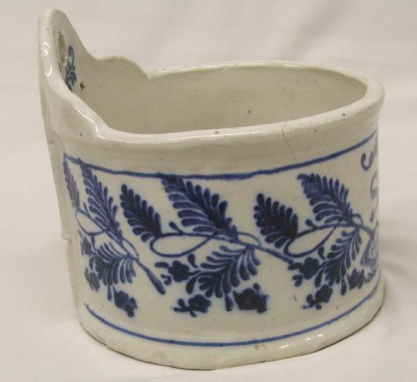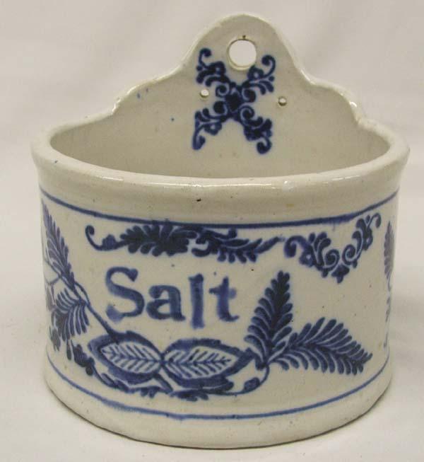 Antique Flow Blue Crock Salt Box. Measures approx. 5 1/2''H x 5 3/4'' diameter. Buyers Pay Actual Shipping and Handling Charges(see terms and conditions for more information).