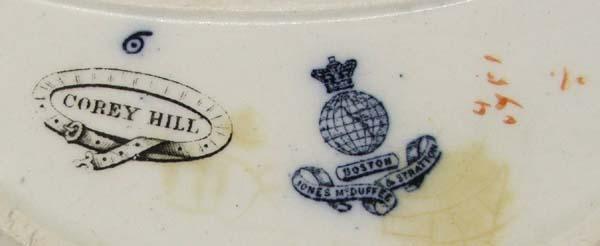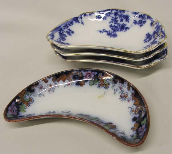 4 Antique Fishbone Plates. Largest is a ''Corey Hill'' and measures approx. 1''H x 5 3/4'' x 3 3/4''. Buyers Pay Actual Shipping and Handling Charges(see terms and conditions for more information)