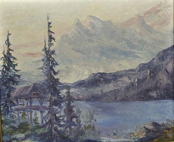 Antique Framed Landscape Oil Painting, visual measures 10'' x 12'', on board, appears as though the artist used a pallet knife on much of this piece, the original label on the back indicates that this was framed by Keystone Picture Frame Company (ca. 1930-2002) in Pittsburgh, PA, 640 Fifth Ave.