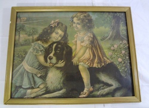 Antique Framed Print, "Rover and His Friends" No. 707, 13" x 16 3/4"