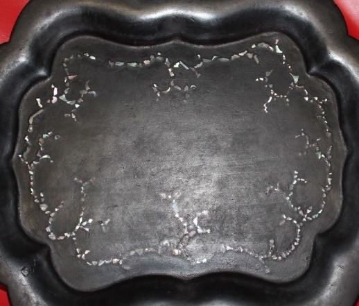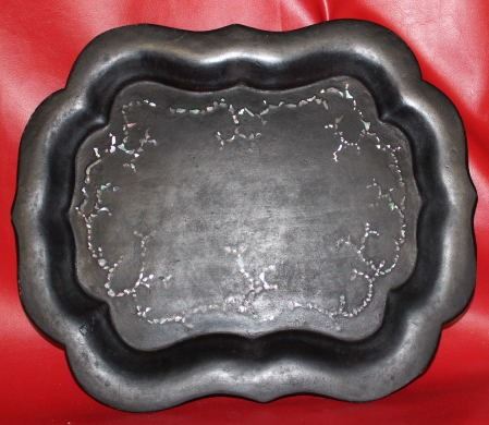 Antique French 19th Century Papier Mache Tray w. Mother of Pearl In-Lay 16x13" inches