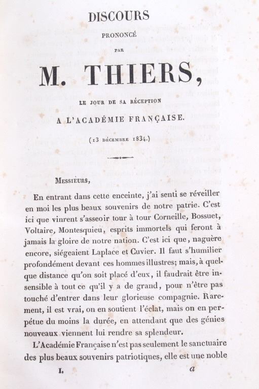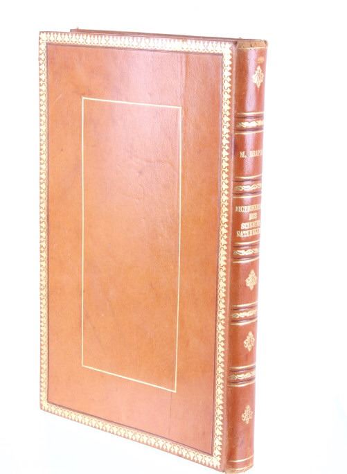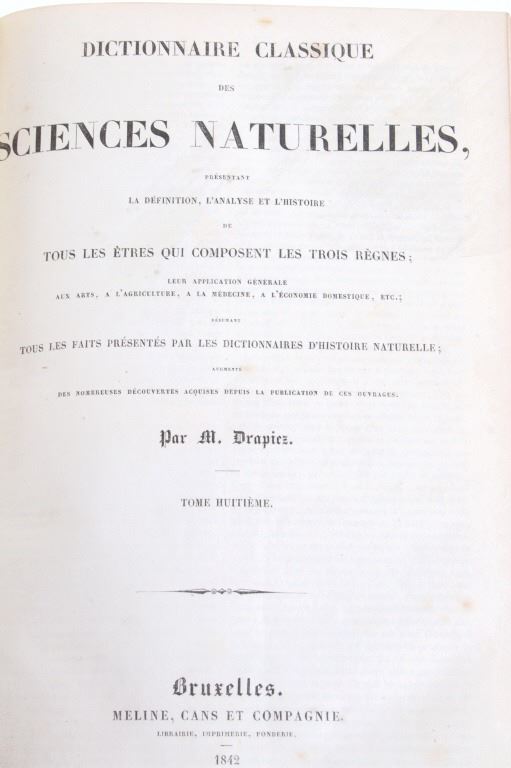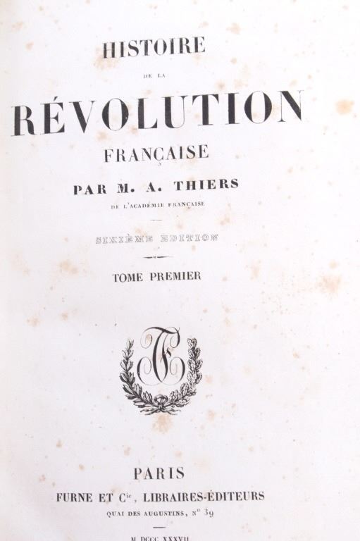 For your consideration is an Antique French Book Collection, circa 1837-1880. Included are "Histoire de la Révolution Française" 1837, A. Thiers; "Dictionnaire Classique des Sciences Naturelles", 1842, M. Drapiez; and, "Les Quatre Heures de la Toilette Des Dames", 1880, M. de Favre. During the nineteenth century, France underwent significant transformations that reshaped its geography, demographics, language, and economic landscape, marking a period of profound change and development. The French Revolution and Napoleonic eras fundamentally altered French society, promoting centralization, administrative uniformity across departments (departments were created in 1790 as a rational replacement of Ancien Régime provinces with a view to strengthen national unity; the title "department" is used to mean a part of a larger whole), and a standardized legal code. Education also centralized, emphasizing technical training and meritocracy, despite growing conservatism among the aristocracy and the church. Cultural and artistic movements, from Romanticism to Modernism, mirrored these societal changes, contributing to France's rich cultural legacy. There was a departure from classicism, embracing Orientalism, tragic anti-heroes, wild landscapes, and themes from the Middle Ages and the Renaissance. The Realist Movement came of age after 1848 and rejected what it considered the opulence and tackiness of the Romantic Movement. Realism was in a sense a revival of 18th-century Enlightenment ideas. It favored science and rationality and considered the Church an obstruction to human progress. The Modernism of the late 19th century, centered in Paris, was marked by artistic innovation across domains including music, dance, architecture, and literature. "Histoire de la Révolution Française", by Adolphe Thiers, provides a detailed and authoritative account of the French Revolution, one of the most significant political and social upheavals in European history. Thiers, who eventually became President of France, authored "Histoire de la Révolution Française", a detailed and dramatic chronicle of the events preceding and after the French Revolution (1789-1799). The book delves into the fall of the Ancien Régime, the rise of extreme political forces, the Reign of Terror, and the eventual ascension of Napoleon Bonaparte. "Dictionnaire Classique des Sciences Naturelles", by M. Drapiez provides definitions, analyses, and historical background for all living things under the three kingdoms of nature—animal, vegetable, and mineral. A significant scientific resource of its era, the study also examines applications in the fields of agriculture, medicine, the home economy, and the arts. Drapiez, a noted Belgian scientist, meticulously documented scientific discoveries and classifications, incorporating new findings from contemporary research. Lastly, "Les Quatre Heures de la Toilette des Dames" by De Favre explores erotic poetry in four songs with themes of feminine beauty, grooming, and allure in a poetic and artistic manner, characteristic of the Rococo period. The books are in good preserved condition, each book is gold gilt leather bound, slight scuffing observed on covers and edges. Intact pages display age tanning throughout and foxing. Largest measures 5.625"W x 10.25"L x .875"D, smallest is 5.25"W x 9"L x .5"D. Collective weight is 3lb, 12oz.