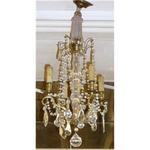 <tr><td>Title:Antique French Bronze and Crystal Chandelier</td></tr>
