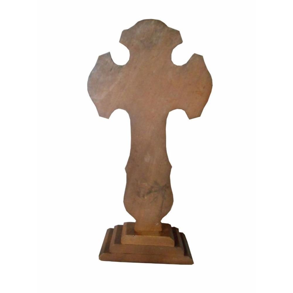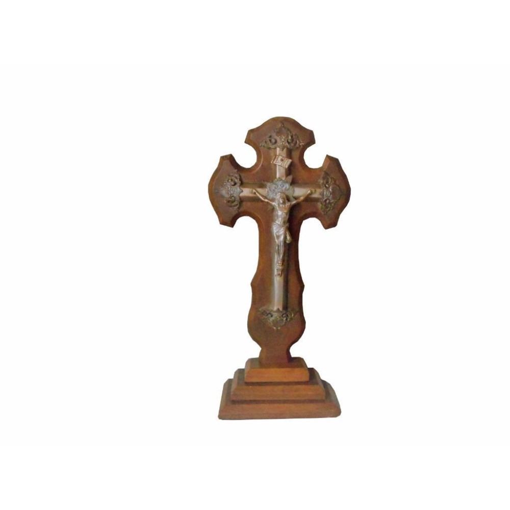 Antique French Wood holy CROSS Panel + CHRIST CRUCIFIX marked INRI made of walnut , Christ and the cross made of metal, GREAT piece, in good used condition, old patina 13.75" tall / 5.50" wide / 2" depth