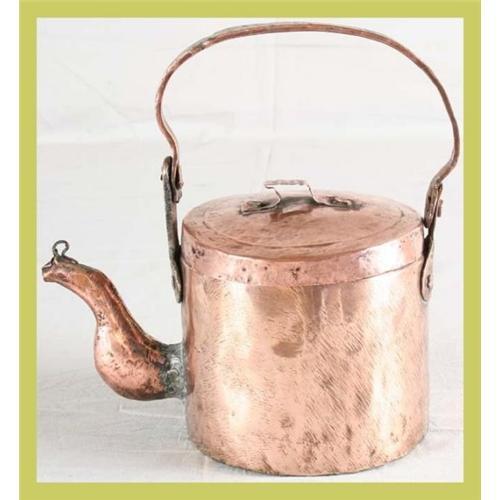 </STRONG>Title: 1900 French Small Kitchenware Kettle </STRONG><P>Item #: 7-282-0</P><P>Comment: A nice old piece that would be a great addition to your kitchen or collection!</P><P>Condition: In overall good condition. Shows normal wear and miscellaneous dents due to age and use. There is a crack around the spout.</P><P>Dimensions (in.): 11H 10W 5.5D </P><P>Age (ca.): 1900</P><P>Origin: France</P><P>Size: Small</P><P>Style: Kitchenware</P><P>Material: Copper</P><P>Object: Kettle</P><P>Piece Type: Vintage Kitchenware/Copper & Brass/Tools</P> #NTR# Antique French Kettle Small Kitchenware Copper