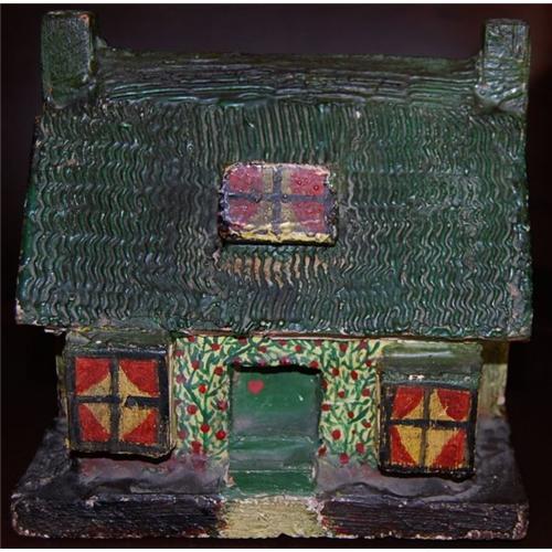 Antique French Polychrome Painted Cottage Bank, c. 1890. This