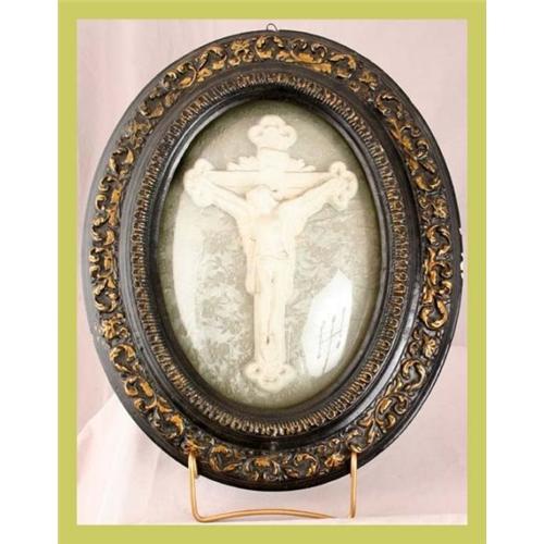 <tr><td>Title:Antique French Religious Crucifix Framed Convex</td></tr>