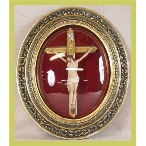 </STRONG>Title: 1900 French Large Religious Crucifix Jesus Framed Convex Glass</STRONG><P>Item #: 7-512-0</P><P>Comment: A very beautiful and old piece on a red felt background that would make a fantastic addition to your collection!</P><P>Condition: In overall good condition. Minor damage to edge of frame due to age and use.</P><P>Dimensions (in.): 19H 17W 3D </P><P>Age (ca.): 1900</P><P>Origin: France</P><P>Size: Large</P><P>Style: Religious</P><P>Material: Plaster</P><P>Material 2: Wood</P><P>Material 3: Ceramic</P><P>Object: Crucifix</P><P>Subject: Jesus</P><P>Additional Detail 1: Framed Convex Glass</P><P>Piece Type: Religious Items</P><P>Special Message: Because EuroLuxAntiques maintains its own website and lists on other online sites, while also operating a physical store location in Newberry, South Carolina, we reserve the right to end any listing early if no bids have been placed. However, once a bid has been placed, we give our online auction buyers priority and allow the listing to end as scheduled. Because of this, we encourage all of our buyers to place bids early so that your treasured find doesn't sell elsewhere to someone else. Happy bidding and thanks! Aimee & Greg ...