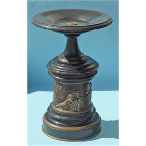 Ancient center table in black marble of Belgium and rings in brass. The figures on the cylinder center them are in brass. The marble has small chipped in the cylinder centers. Object acquired at the flea market to Paris in 1958.