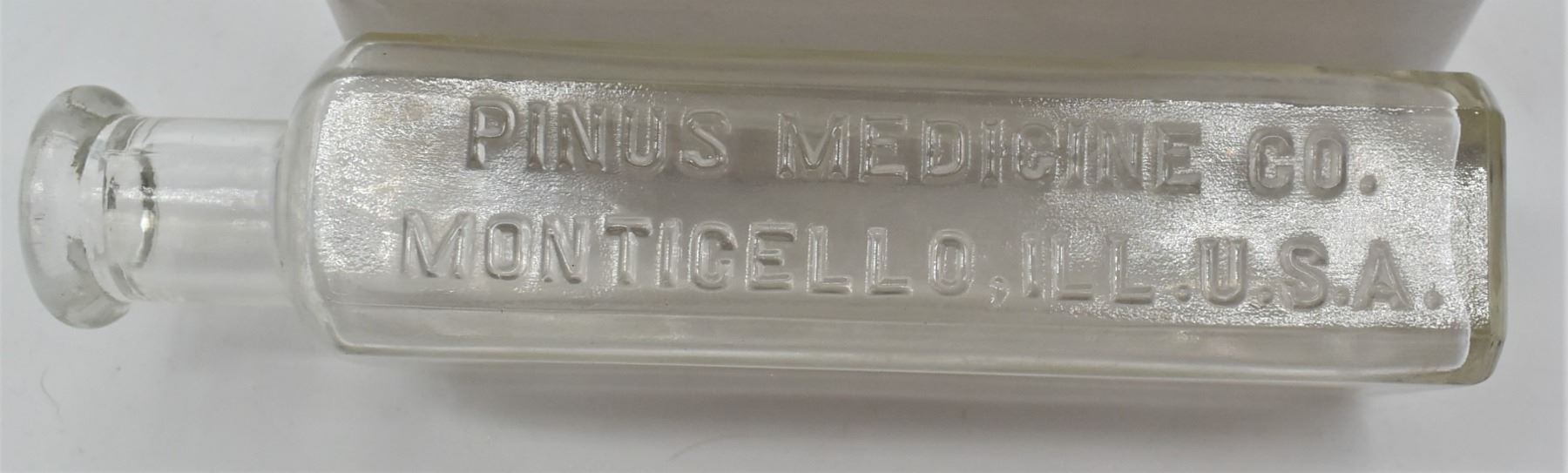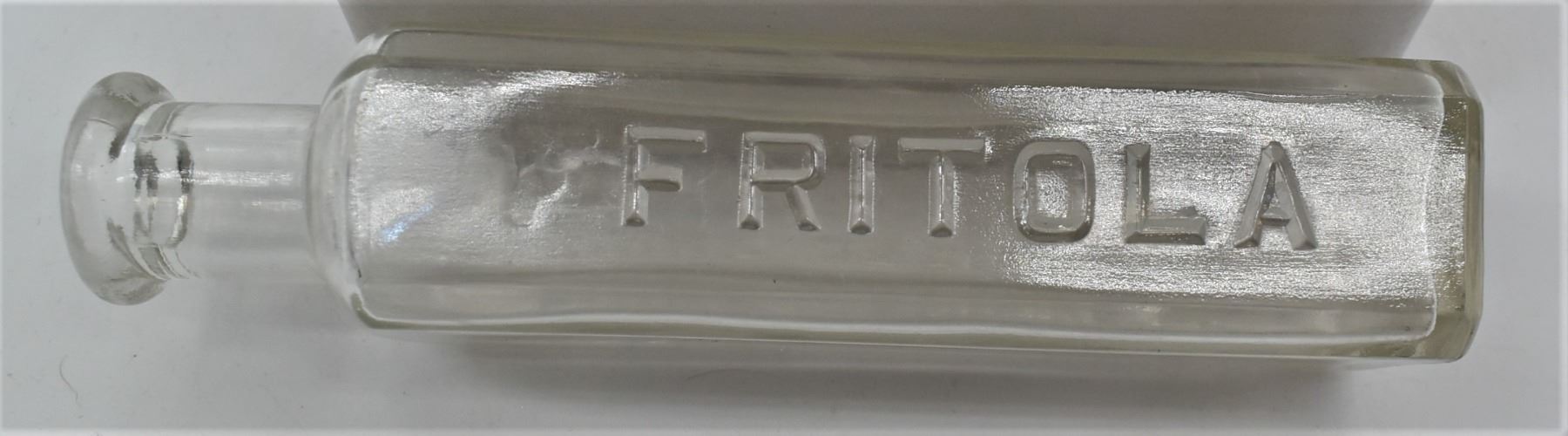 Antique Fritola Pinus Medicine Co. Glass Bottle, measures 6.5''L x 1.5'' x 2''W, embossed markings, Monticello IL, ca. 1920s, FYI: ''It appears that the Pinus Medicine Company was started in 1903 or 1904 by Henry F. Edsall in San Francisco, California. The company was first listed in the 1904 San Francisco Directory with an address of 734-736 Valencia. Fruitola advertisements begin appearing in 1904 as well. The earliest one I could find was in the January 12, 1904 issue of the Oakland Tribune. Marketed as a system cleaner it claimed to remove gall stones and cure all stomach troubles.''