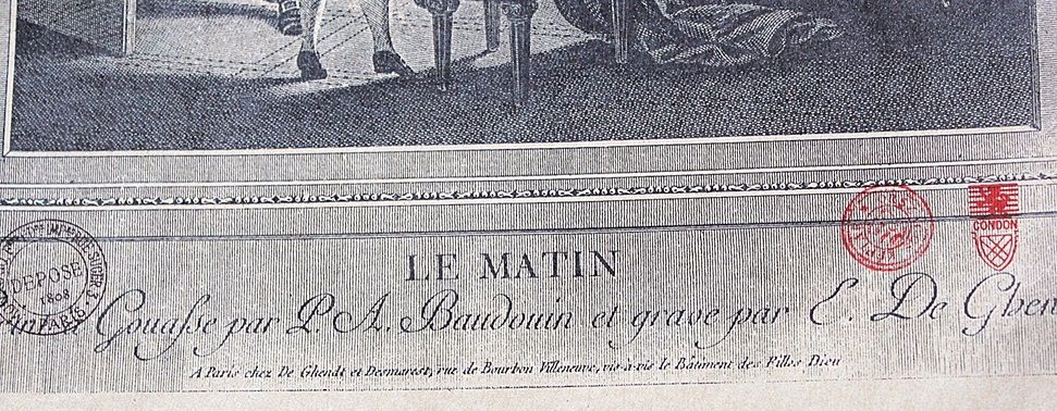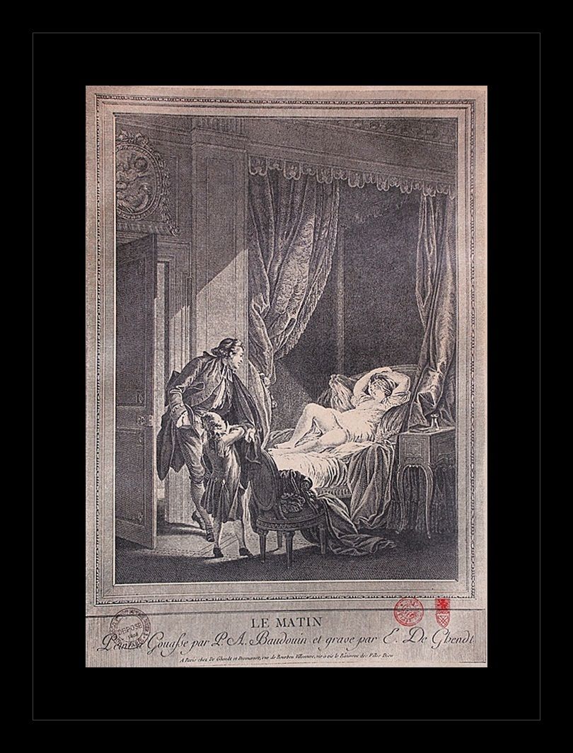 Antique gallery stamped lithograph dated 1887. Professionally framed in black on black gallery style. Approx. image size: 14.5x10.