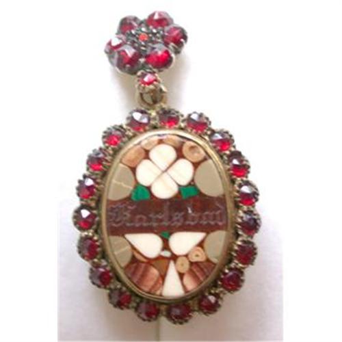 <tr><td>Title:Antique Garnet & Pietra Dura Locket</td></tr>