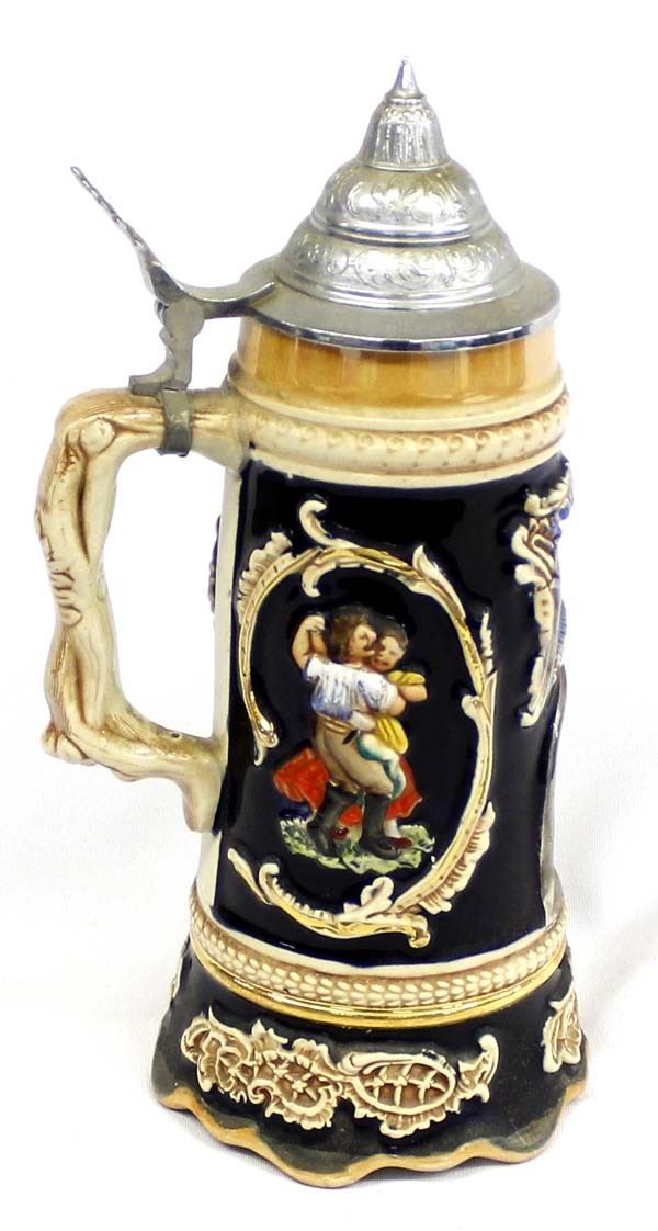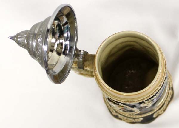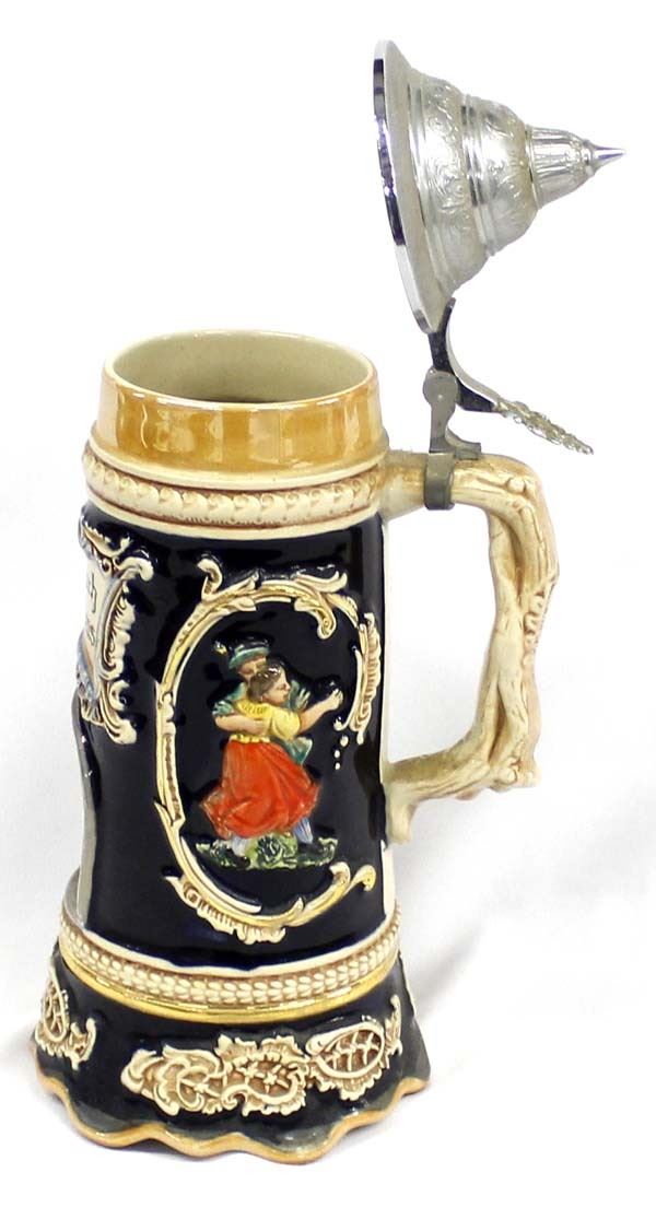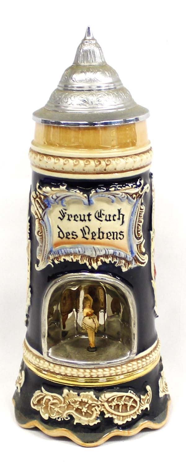 Antique German Musical Stein, measures 5'' x 11.5'' x 5.5'' and is marked on the bottom, plays ''Lilli Marleen'' ''which is a German love song performed by Lale Andersen, which became popular during World War II throughout Europe and the Mediterranean among both Axis and Allied troops.'' also marked ges. gesch. (gesetzlich geschtzt) which means ''legally protected'' or ''copyrighted'' as in patented
