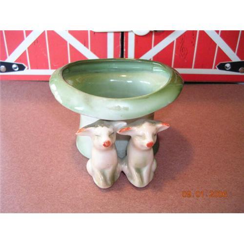 <tr><td>Title:Antique German Pink Porcelain Pigs with Green</td></tr>