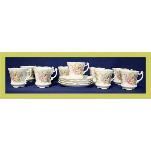 </STRONG>Title: Set of 10 1900 German Rococo Cup & Saucers Roses </STRONG><P>Item #: 3-71-0</P><P>Condition: One Cup Has a Small Chip.</P><P>Dimensions (in.): Saucer (Qty 10) .75H x 5.25W; Cup (Qty 10) 2.75H x 3.625W x 2.875D </P><P>Age (ca.): 1900</P><P>Origin: Germany</P><P>Style: Rococo</P><P>Material: Porcelain</P><P>Object: Cup & Saucers</P><P>Subject: Roses</P><P>Piece Type: Ceramics & Porcelain</P>Antique German Roses Cup & Saucers Rococo Porcelain