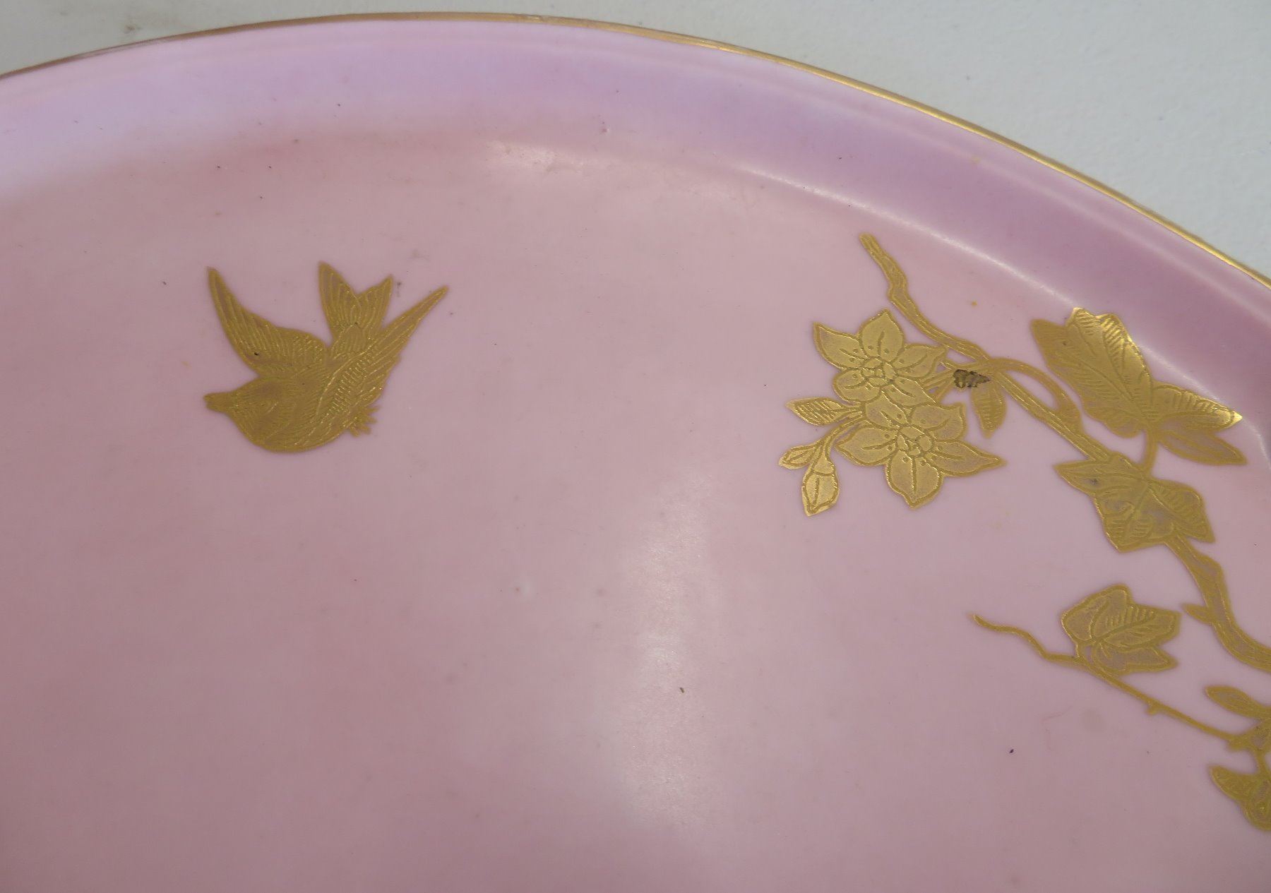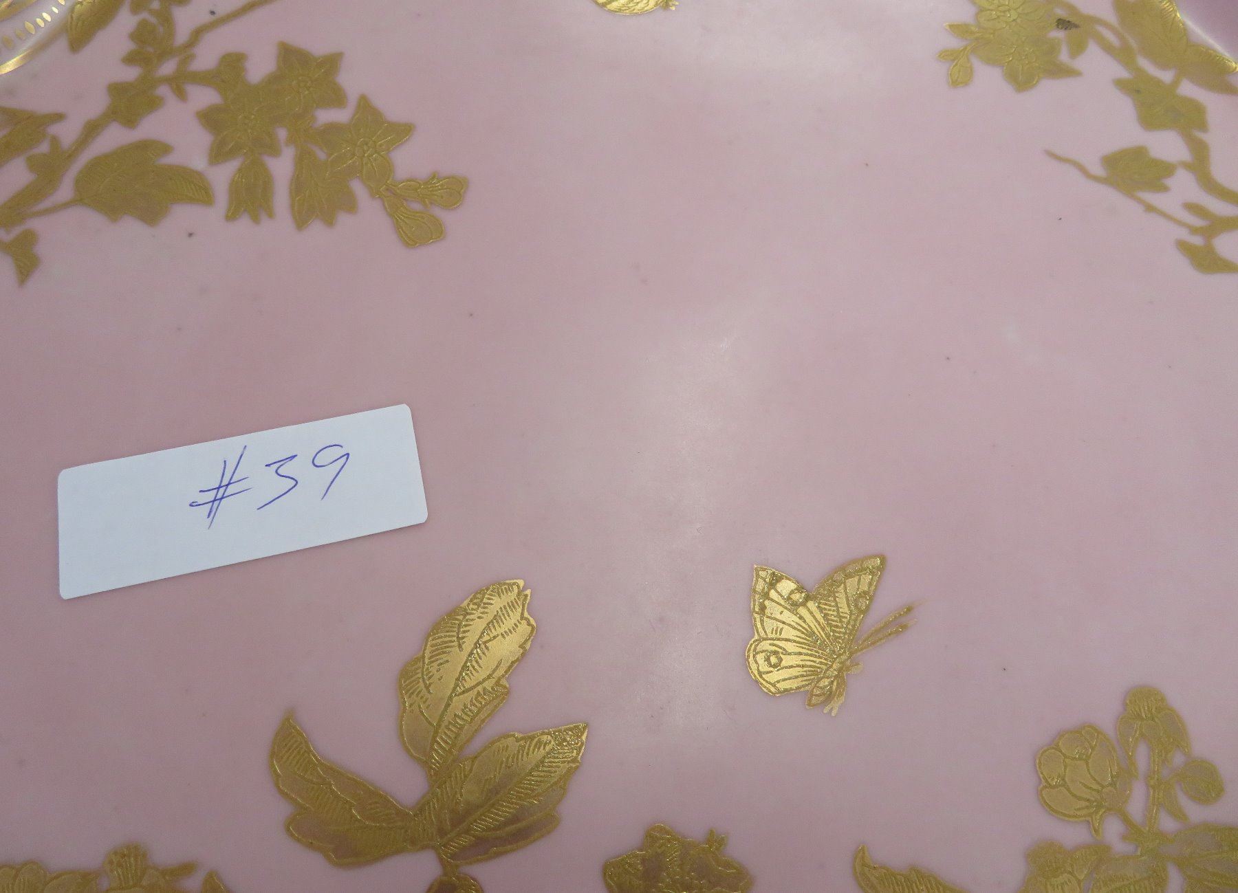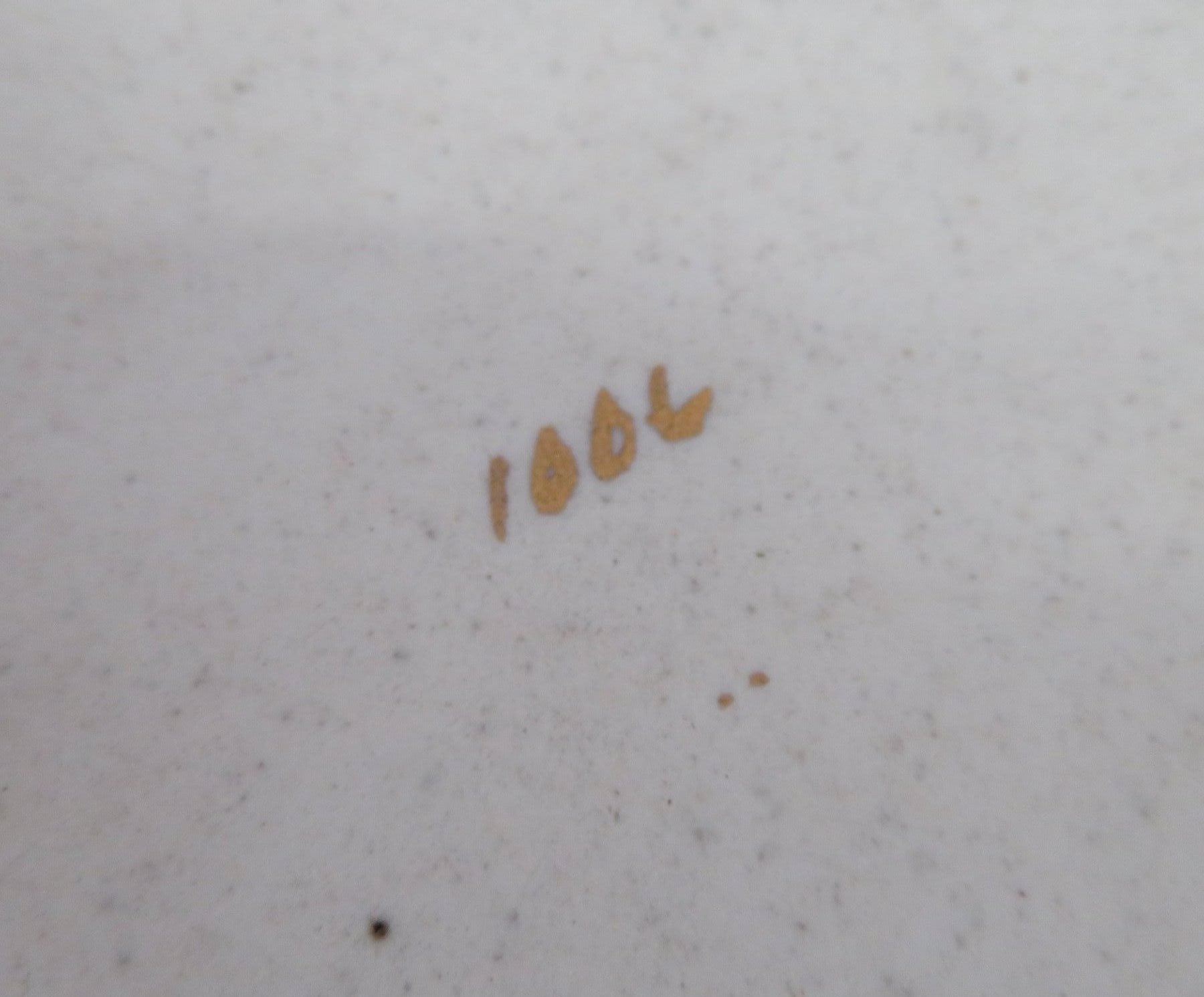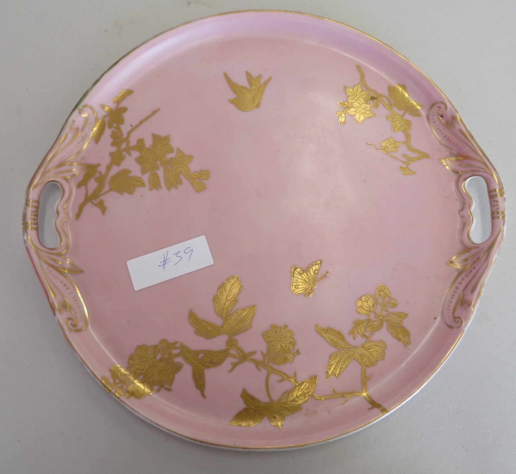 Antique Gilded Charger, c. 100 years old. Made of porcelain, the item measures 14" x 1". Likely English. Gilded, #1006 on back. Condition: Good, see images. Shipping: $45.00 USA estimate only, double-boxed, w/insurance and signature.