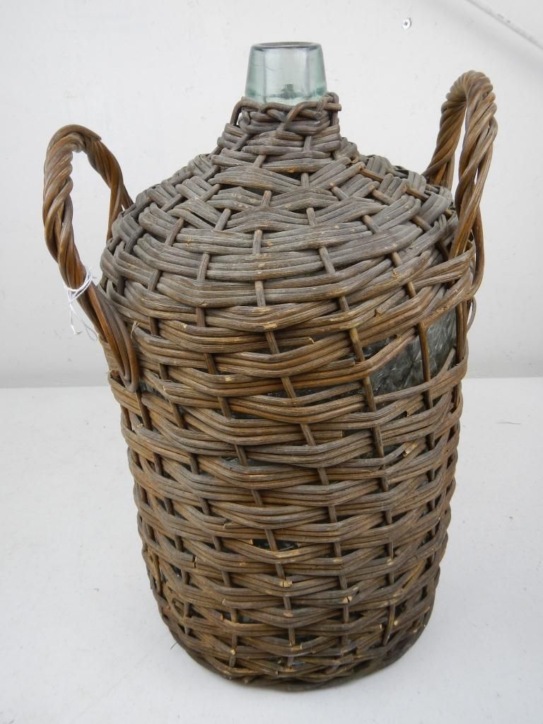 Antique Glass jug with Weaving - This is an old Glass jug that has been covered with Basket Weaving and two handles. Sits 20" high and 11" in diameter.