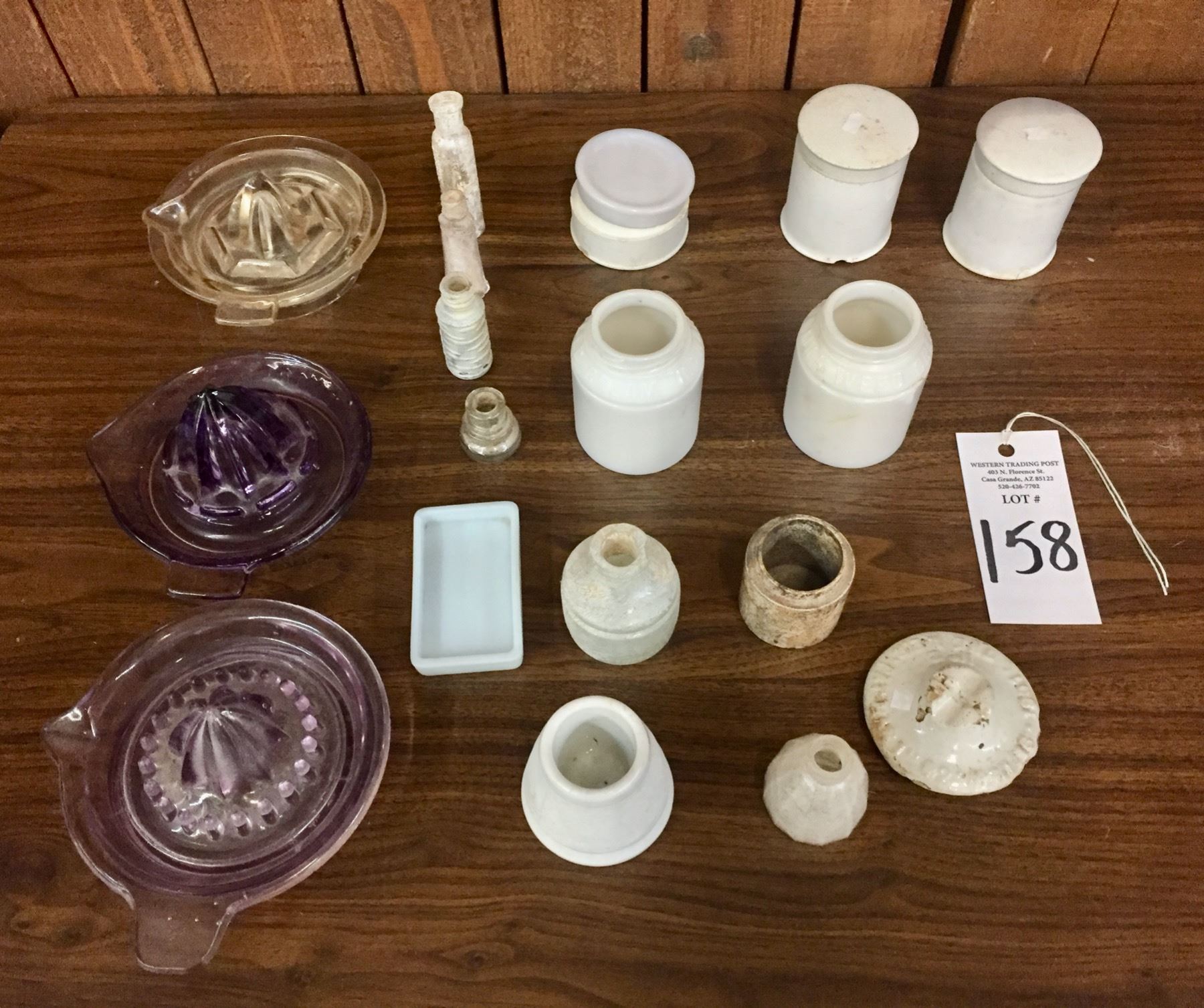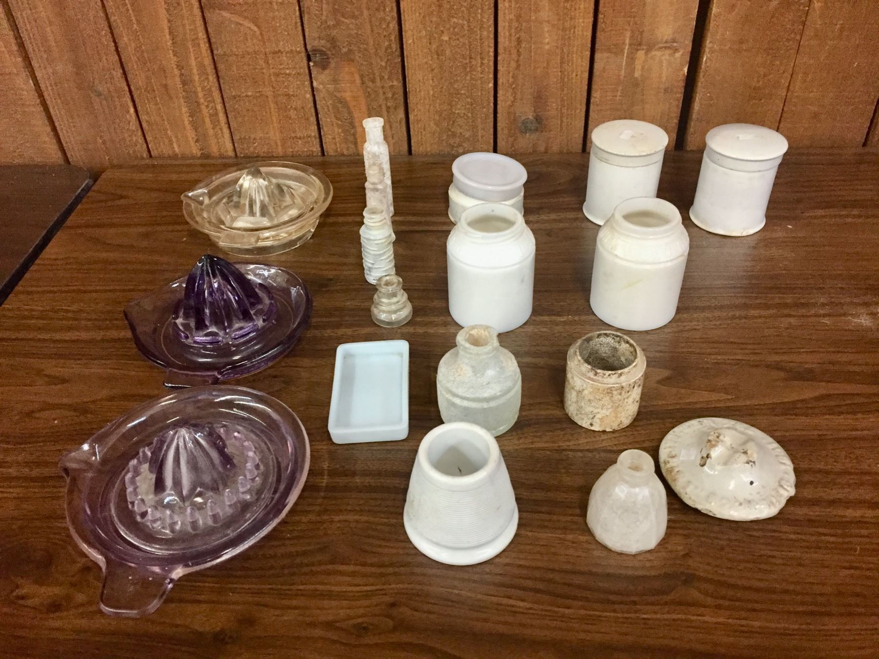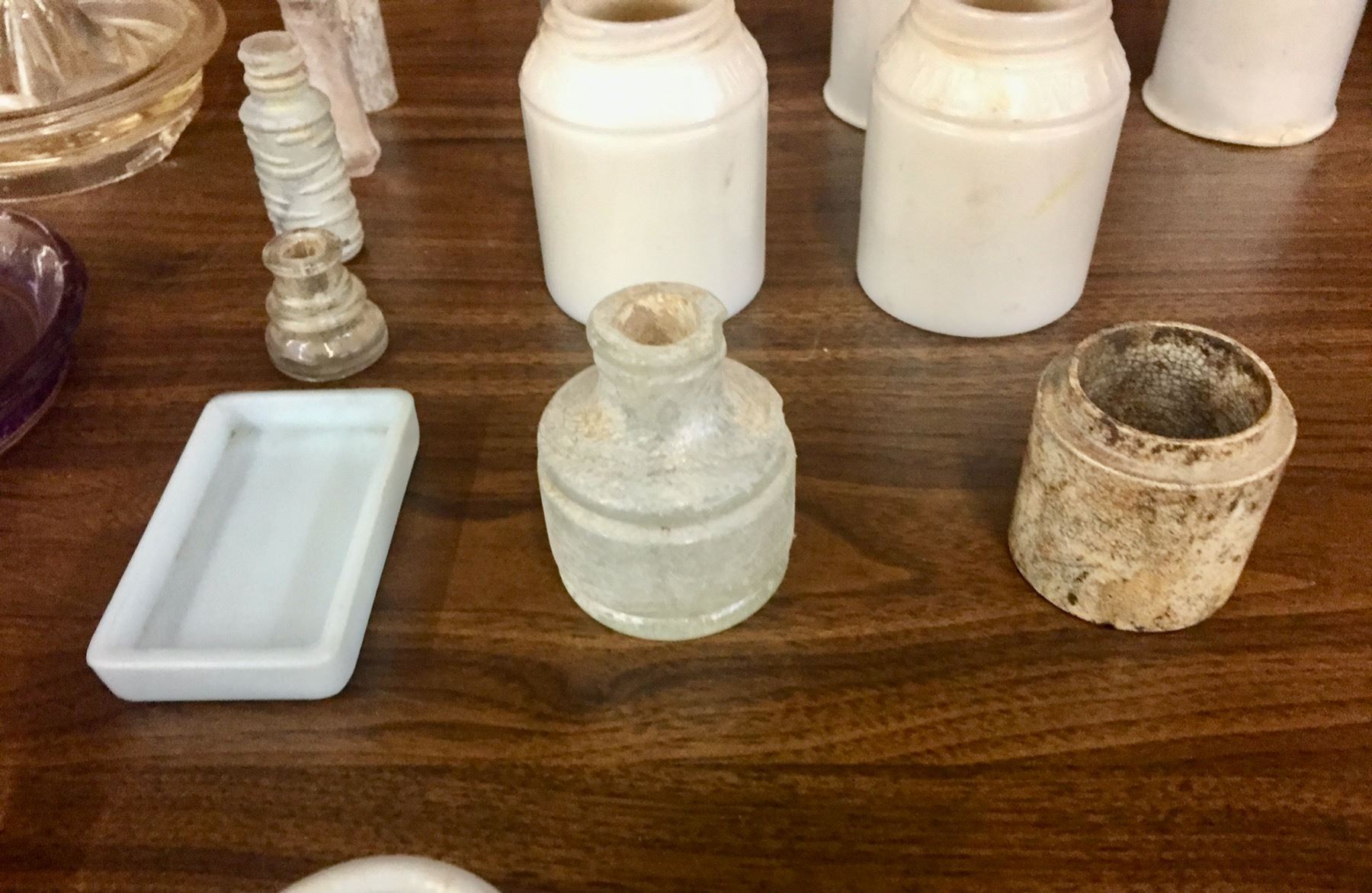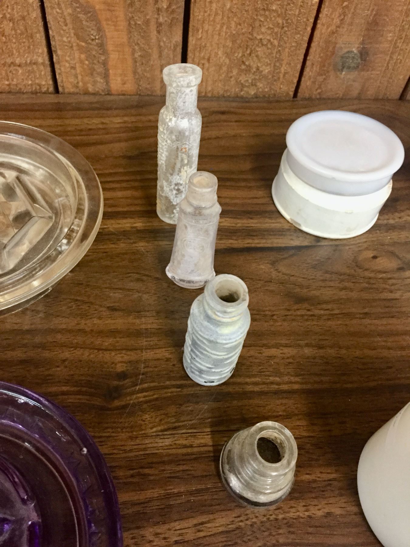 Description: Presented for sale in this lot is a group of antique glassware, bottles, milk glass, etc. in various shapes and sizes. Maker: Varies. Approx. Age: Mostly antiques. Size: Various. Condition: Pretty good for their ages, wear and fading expected. Please look closely at the pictures - they are an important part of our description. Shipping: There will be a $10 handling / packaging fee for shipping this lot. The actual cost of postage will be added on top of that.