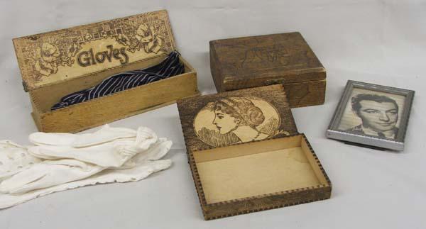 Antique Glove Box, Gloves, Photo, 2 Storage Boxes. Photograph of Robert Taylor. Largest box measures approx. 2''H x 10''L x 3 1/2''. Buyers Pay Actual Shipping and Handling Charges(see terms and conditions for more information).