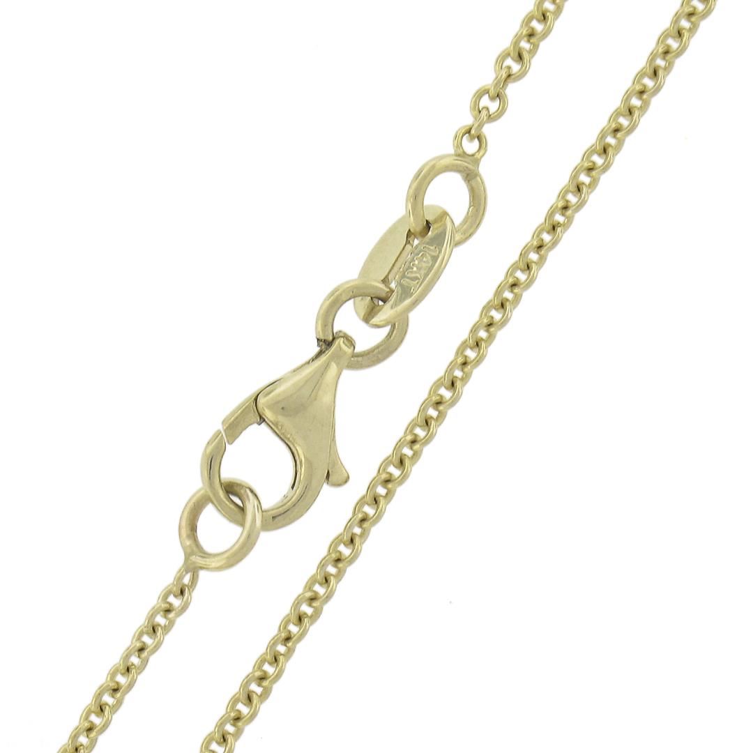 An antique solid 14k yellow gold pendant necklace, with 1 GIA round cut natural diamond (E - VS2 ; 0.69ct ). 18 inch cable link chain, 3.22 grams total weight, pendant measures 13.6x9.8mm. Comes with all original relevant certifications.