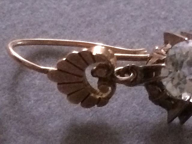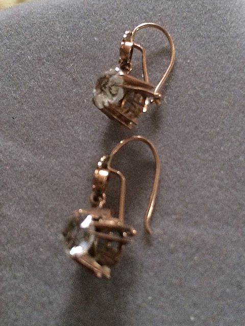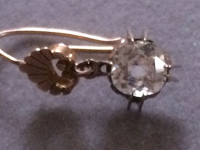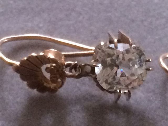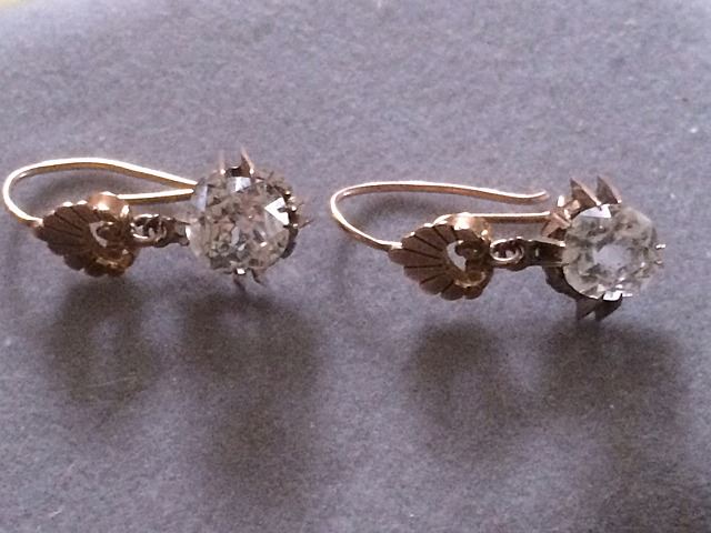 Gold Antique ladies earrings, very nice pair, maybe Victorian era High Style with simulated stones, settings are fabulous.